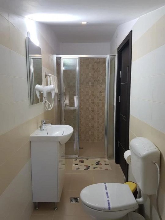 • Fiecare cameră dispune de grup sanitar propriu, aer condiționat, TV cu cablu, frigider și internet wireless