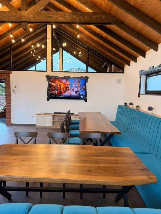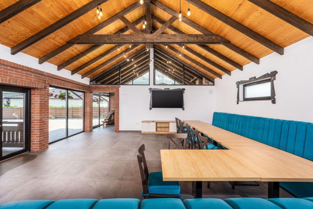 Pavilion de tip foisor inchis, generos cu zona de servire a mesei si ideal pentru petreceri private. Totul este amenajat cu foarte mult bun gust, atentie la detalii, materiale si finisaje de calitate. Bucatarie complet utilata. Terasa spatioasa si curte amenajata cu pavele, usor de intretinut. Parcare privata. Panouri solare capacitate 18 kw. Pompa de caldura capacitate 20. Cheltuieli minime de intretinere. Acces rapid la toate atractiile zonei.