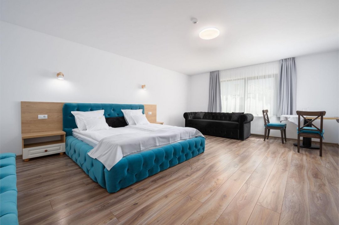 Fiecare camera a fost proiectata pentru confortul si relaxarea oaspetilor. Spatiile sunt luminoase, primitoare si finisate cu materiale de calitate superioara. Mobila noua, realizata pe comanda, in stil modern. Paturi matrimoniale confortabile cu saltele premium si lenjerii de calitate hoteliera.