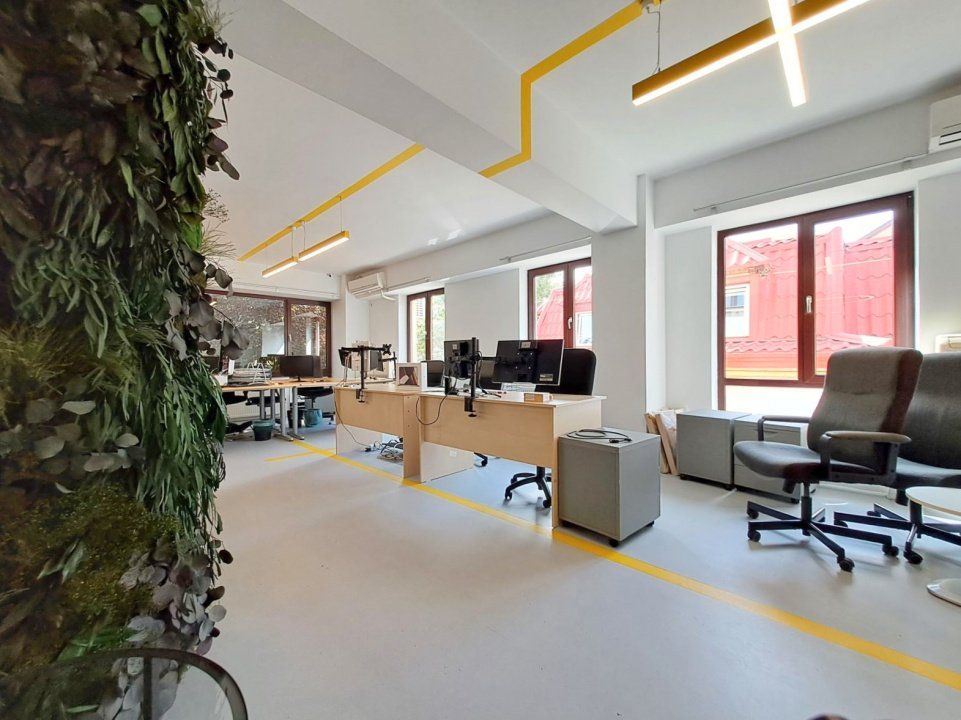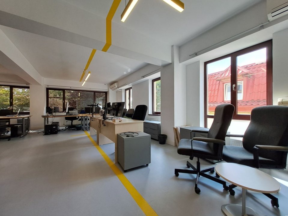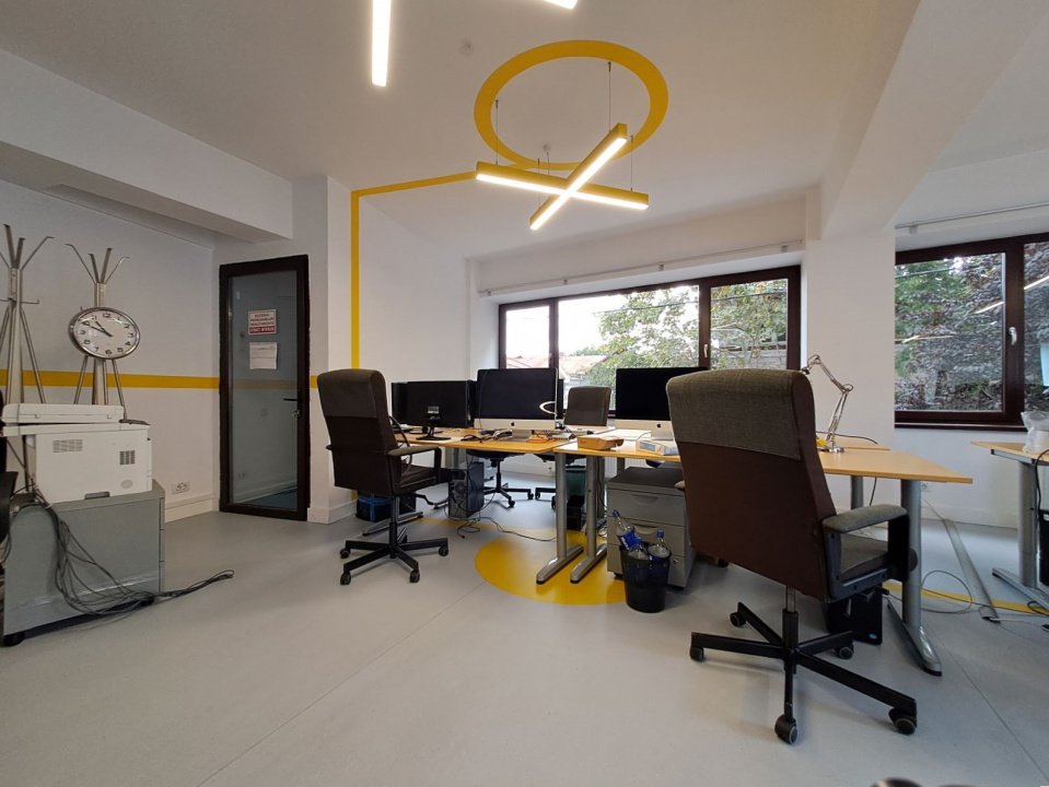 destinatie spatiu de birouri compartimentare open space  centrala termica pe fiecare nivel contorizare individuala utilitati pe fiecare nivel( gaze, apa, energie electrica) circuite independente pentru prize si iluminare 2 grupuri sanitare pe nivel 2 cai acces imobil supraveghere video exterioara loc relaxare in curtea imobilului acces securizat