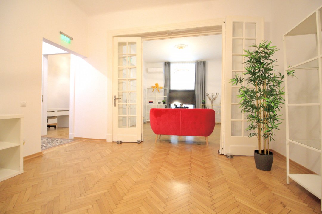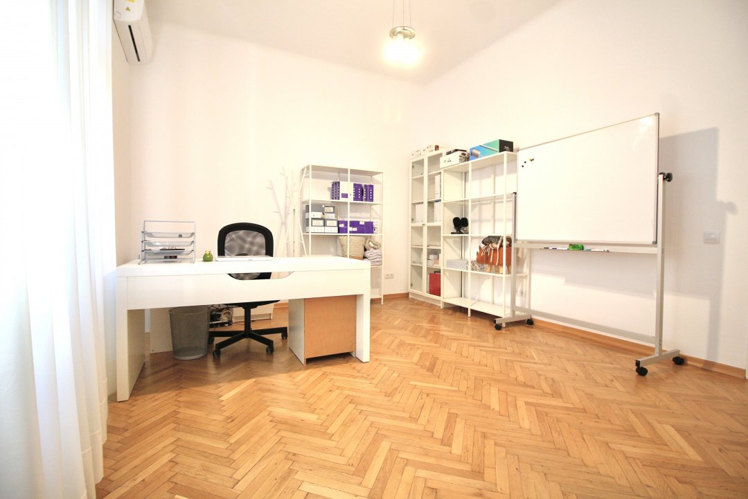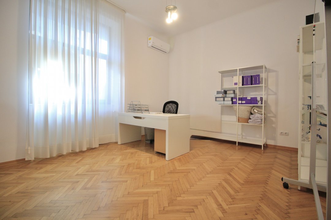 MOSILOR-PACHE PROTOPOPESCU, SEDIU REPREZENTATIV, AMENAJAT LUX, 6 CAMERE, 127MP! Poziție ultracentrală privilegiata (vedere chiar în rondul Izvorul Rece), foarte aproape de Piata Universității, accesibila ușor din orice zona a capitalei cu multiple mijloace de transport. Interior rafinat, cu elemente originale recondiționate, spații largi si înalte, bucătărie mobilata si utilata, multiple spații pentru depozitare. Spațiul, situat la parterul (înalt) al unui bloc interbelic emblematic, cu vizibilitate stradala si trafic pietonal, poate fi potrivit pentru notariat, cabinete avocatura sau consultanta, psihologie, showroom, magazin (online), firma evenimente, birou arhitectura, etc.