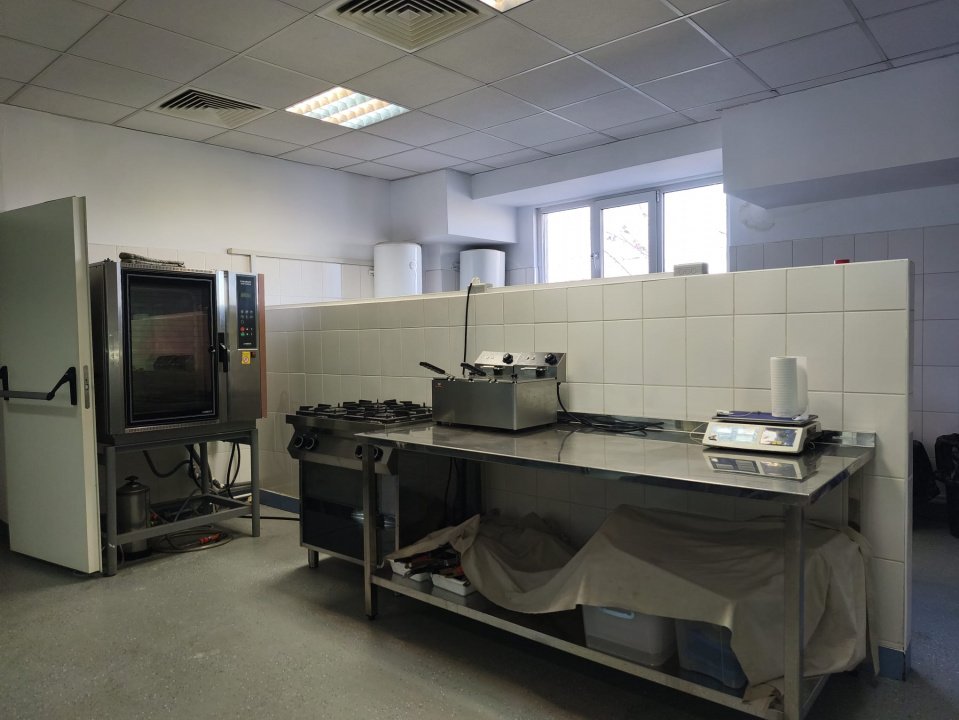 bucătărie ~200 mp, complet utilată, dotată cu frigidere și echipamente profesionale;
