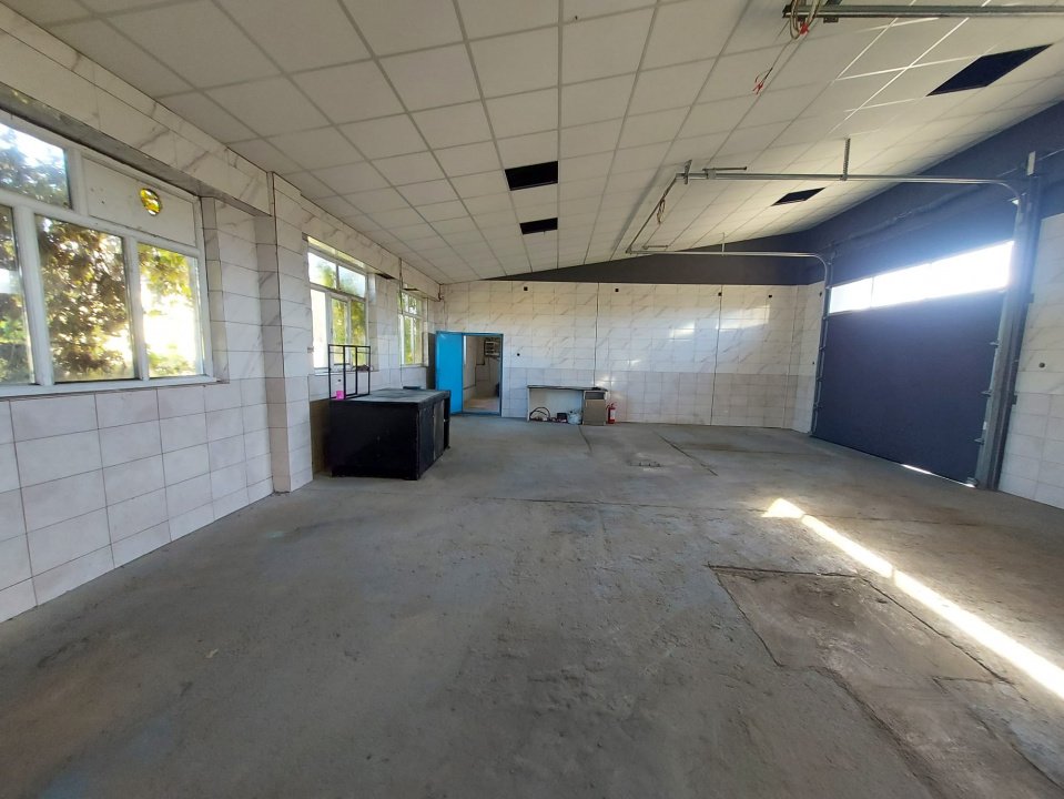 Hală principală: 200 mp cu birou, vestiar, magazie si baie – ideală pentru producție, depozitare sau atelier;