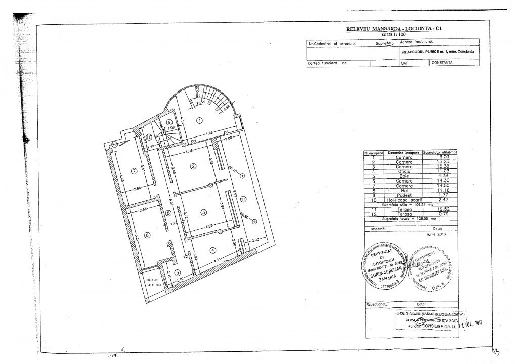 Mansarda – Apartament 3 camere, o baie si terasa spatioasa in suprafata totala de 126.55mp