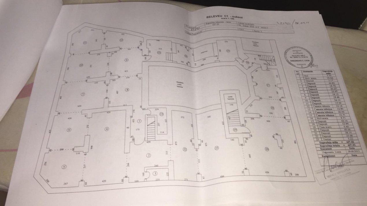 Demisol – 500 m² Conectat la colectorul stradal de canalizare, cu 8 grupuri sanitare, 3 ieșiri la stradă, alimentare cu apă, canalizare și curent electric. Include bazin de apă pentru hidranti (1 tonă) și hazna.