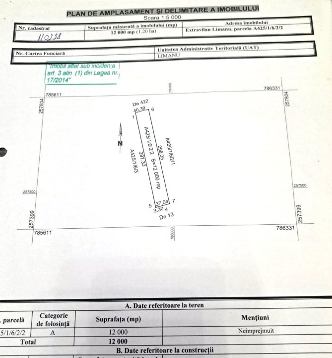 Agenția noastră vă propune spre vânzare un teren cu suprafata 12.000 mp, amplasate la 1km de DN 39, într-o zonă cu potențial ridicat.