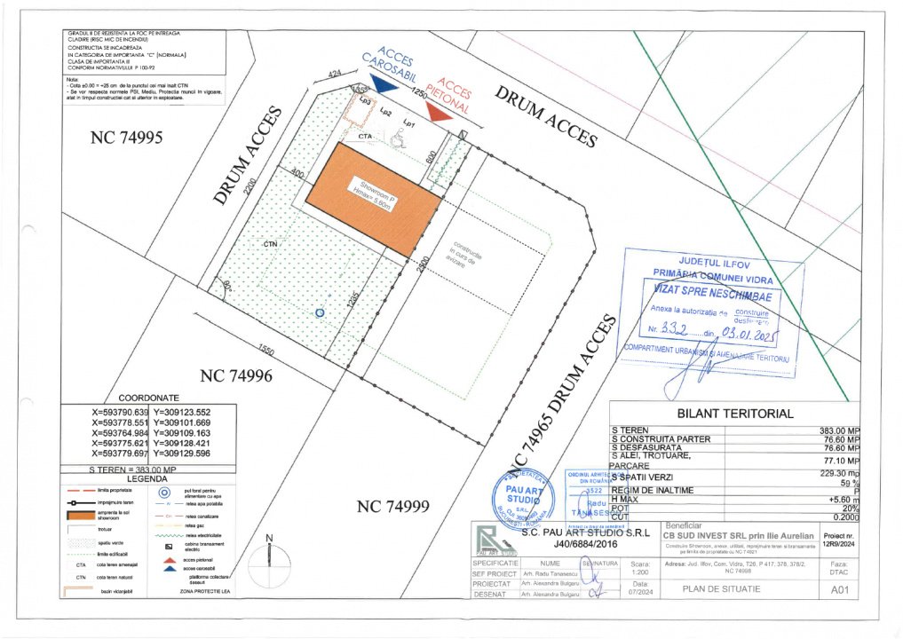 Va propunem spre vanzare 2 loturi teren de 383mp fiecare (adica in total o suprafata de 766mp) pe Calea Bucuresti intre Comuna Berceni si Comuna Vidra. Terenul se afla la aproximativ 50ml fata de soseaua asfaltata si detine autorizatie de constructie valabila pentru hala/showroom. Posibilitate achizitie in rate direct de la dezvoltator!