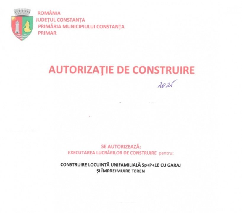 Terenul deține toate atuurile realizării unei arhitecturi moderne prezentată în imaginile anunțului care sunt extrase din Autorizație.