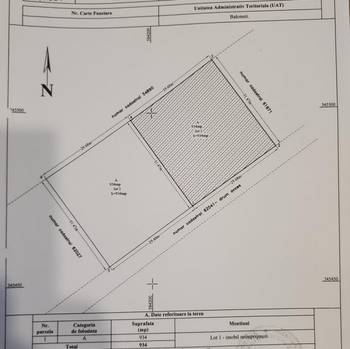 Din suprafața totală, 934 m² reprezintă terenul propriu-zis, iar 186 m² drumul de servitute.