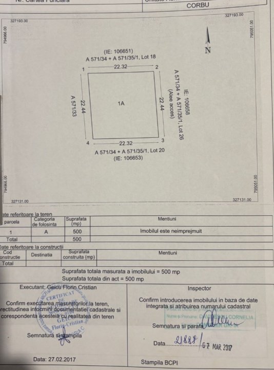 Vă propunem spre vânzare un lot de teren intravilan cu suprafata de 500 mp, situat în Corbu, într-o zonă aflată în plină dezvoltare, la o distanță de 1.3 km de Plaja Corbu.