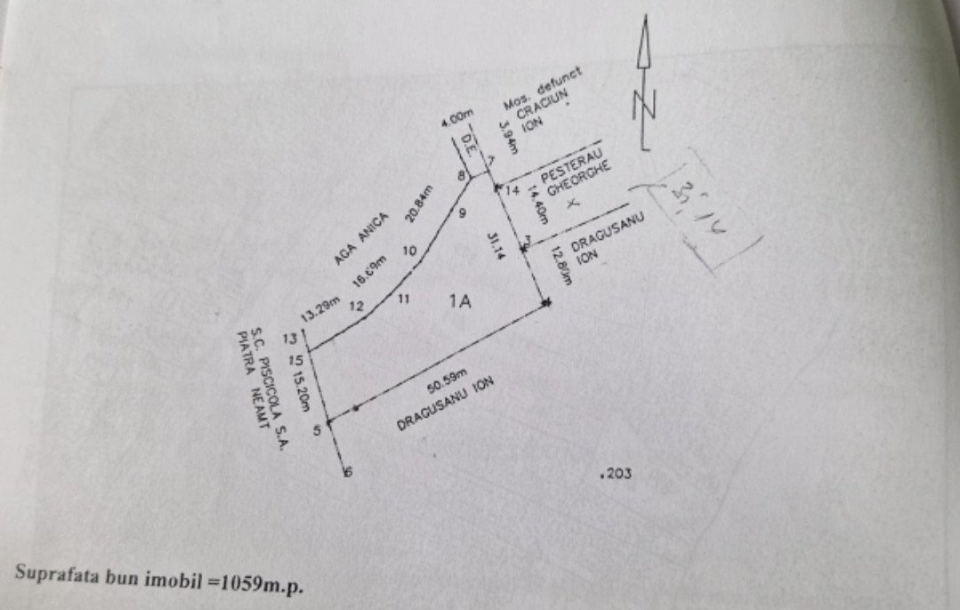 Va prezint spre vanzare un teren situat in localitatea Trifesti , la doar câteva minute de Roman. Terenul are ieșire la lac, este branșat la rețeaua Electrica si dispune de put forat. Pe teren se afla o construcție cu o camera folosita ca si casa de vară și un foișor. Pe teren sunt plantați multi pomi fructiferi: piersici, nectarini, pruni, gutui, aluni, meri, peri si nuci.Accesul catre teren se face atat pietonal cat si auto.
