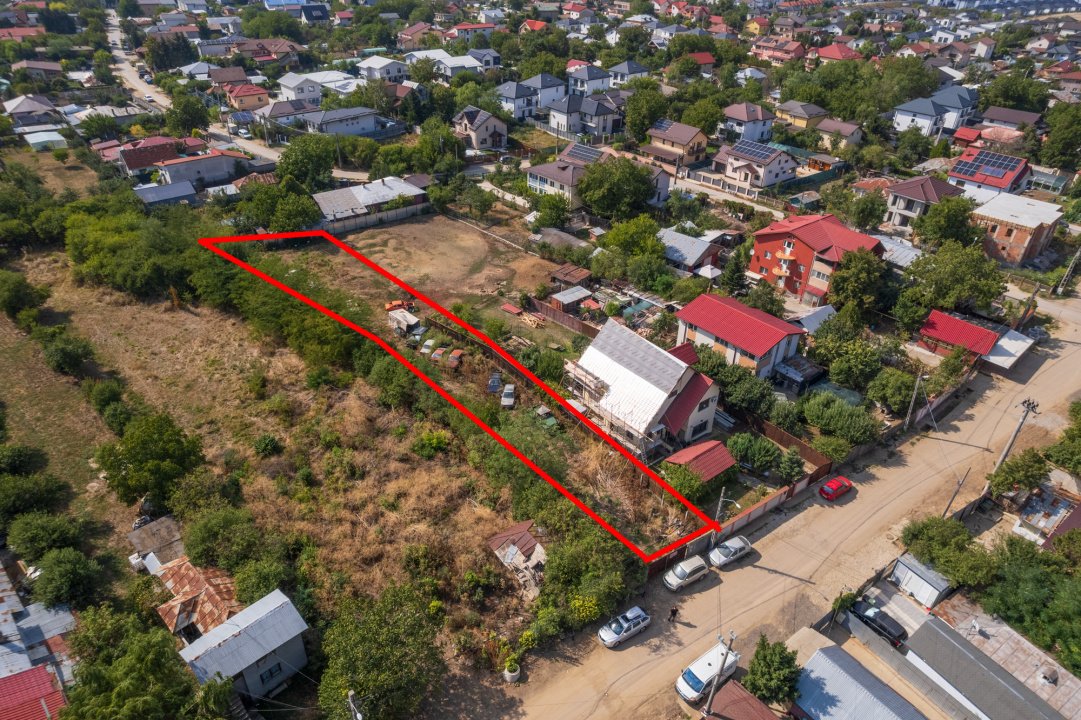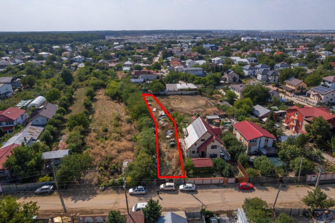Zona linistita de case, trafic redus, acces rapid catre Centura Bucuresti si Aeroportul Internațional Henri Coandă. Teren intravilan, utilitati la poarta, forma neregulata, perfect pentru constructia unei case individuale pe un lot aerisit. Strada asfaltata si civilizata cu constructii finalizate, deschidere 11 m, POT 30%, CUT 0.7 conform urbanism de informare.